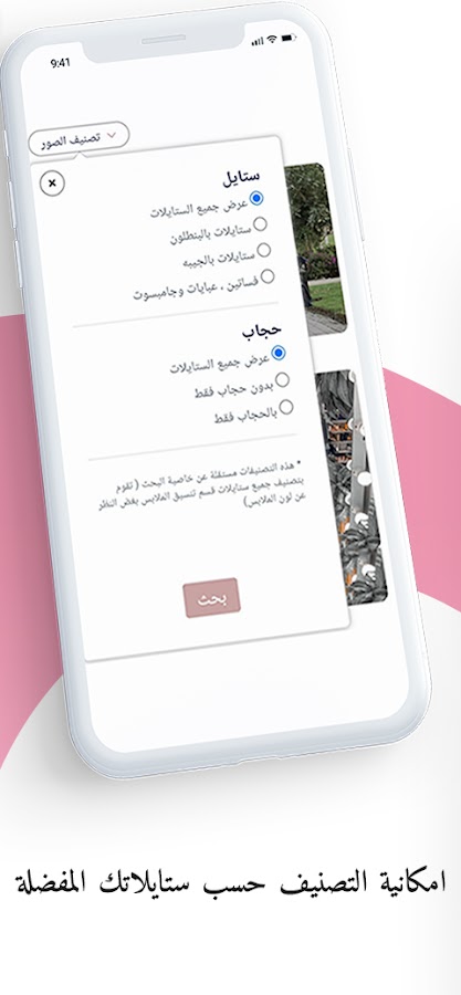 يحتوي التطبيق على قسم ملابس السواريه الذي يضم مئات من ساتين السواريه وملابس السهرة للمحجبر تابرات تو
