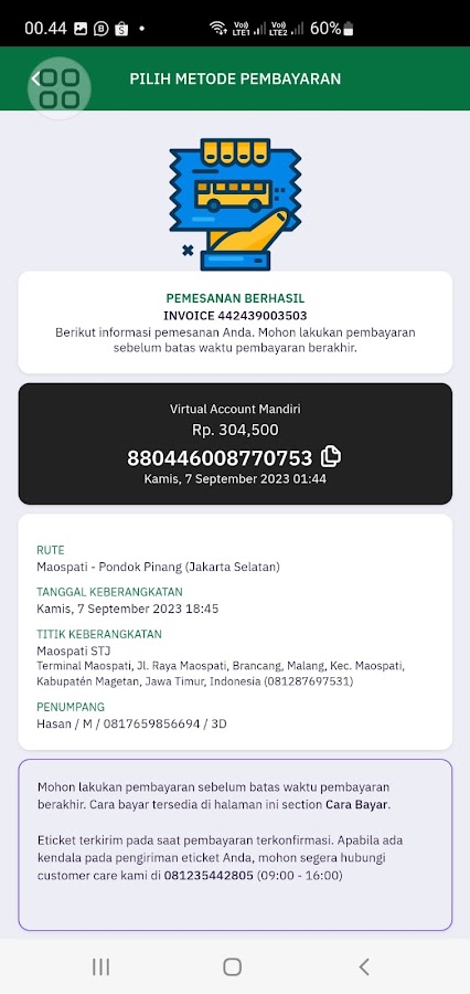Давай, покупай билеты на автобус Sudiro Tungga Jaya онлайн, и есть много способов оплаты. Покупайте билеты Судиро Тунгга Джая в любое время и в любом месте!