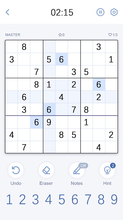 Цель судоку – заполнить сетку 9×9 цифрами, чтобы в каждом столбце, строке и сетке 3×3 были цифры от 1 до 9. В начале игры некоторые ячейки сетки 9×9 будут заполнены. Ваша задача – вписать недостающие цифры и заполнить всю сетку при помощи логики. Не забудьте, ход будет неверным, если: