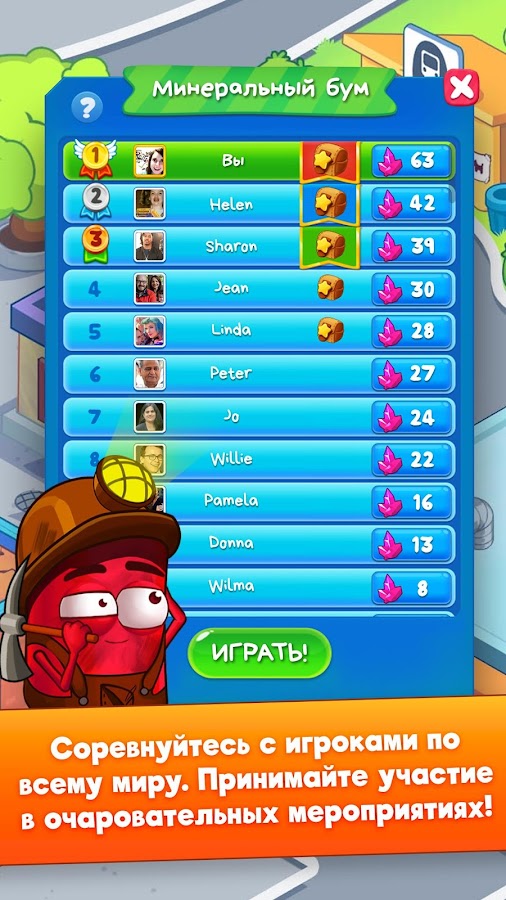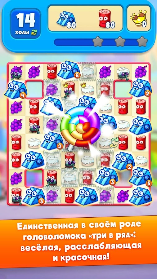 Веселые персонажи станут вашими лучшими друзьями в мгновение ока! Соединяйте сладости в ряд, убирайте увлекательные препятствия и комбинируйте ваши движения, чтобы стать лучшими! Докажите свои навыки в турнирах с другими игроками и зарабатывайте золото, решая ежедневные задачи! Играйте со своими друзьями или соревнуйтесь друг с другом!