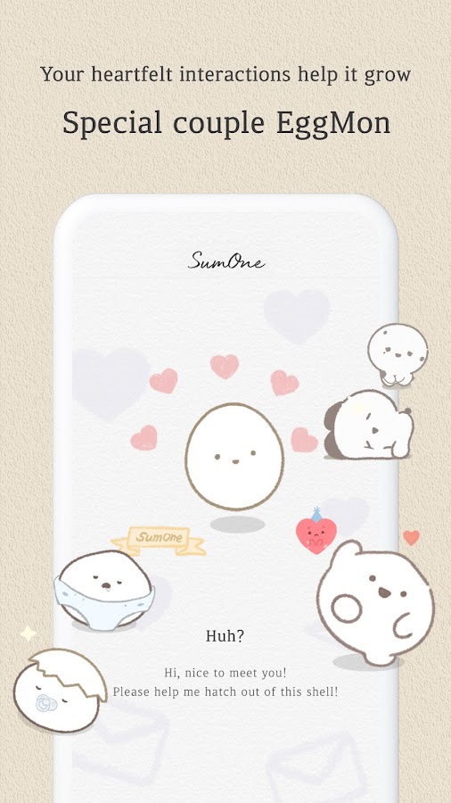 Добро пожаловать EggMon в ваше путешествие! Это милое яичко очаровано Любовью и не может не интересоваться вашими отношениями! Помогите ему вырасти и принять удивительную новую форму, поделившись своими честными ответами в «Ежедневном вопросе»!