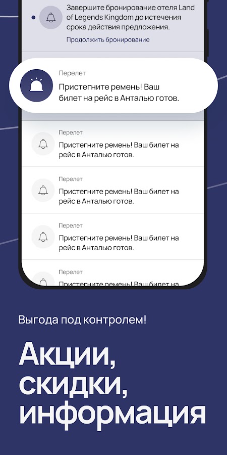 • Актуальные изменения: времени вылета, даты тура, аэропорта или авиакомпании.