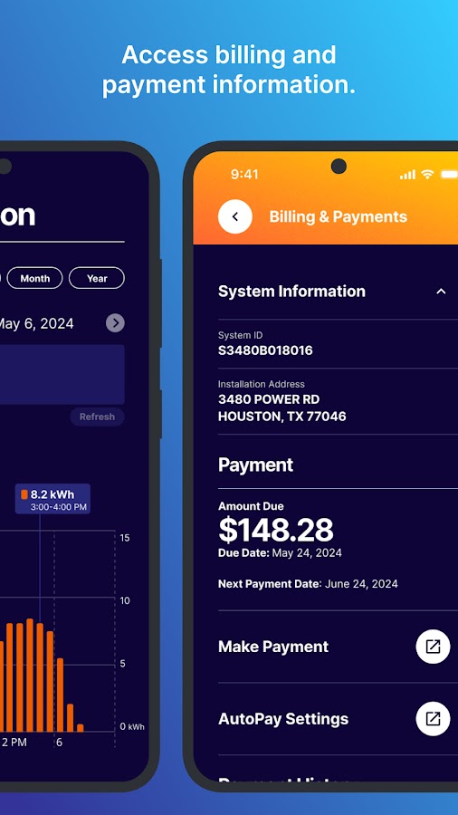 Приложение Sunnova позволяет домовладельцам контролировать энергию своего дома, объединяя современные энергетические приборы, в том числе солнечные батареи, аккумуляторы и электромобили, в одном удобном приложении. Пользователи могут управлять своими устройствами; просматривать почасовую, дневную и месячную производительность; и откройте для себя новые способы оптимизации своего дома. Являясь центральным местом для управления новой домашней энергетической экосистемой, Sunnova позволяет домовладельцам управлять и оптимизировать свой адаптивный дом Sunnova Adaptive Home™.