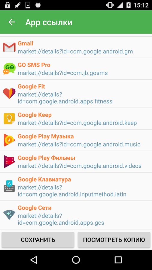 — Резервное копирование ссылок для скачивания установленных приложений