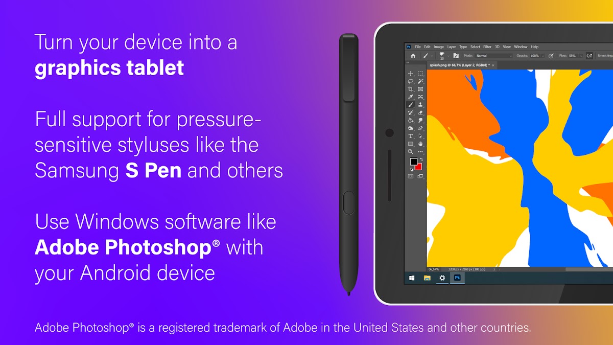 Превратите свое устройство Android в графический планшет и используйте через него такие приложения, как Adobe Photoshop®. SuperDisplay поддерживает чувствительные к давлению стилусы, такие как Samsung S Pen, что делает его идеальным для цифрового искусства и другой творческой работы.