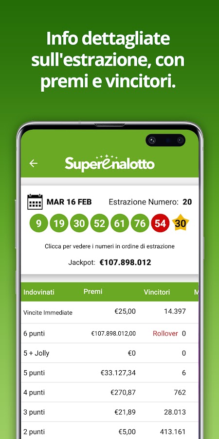 Последние результаты SuperEnalotto за несколько секунд до окончания розыгрыша. Это простое в использовании приложение показывает выигрышные номера SuperEnalotto, а также информацию о количестве игроков и сведениях о призах.