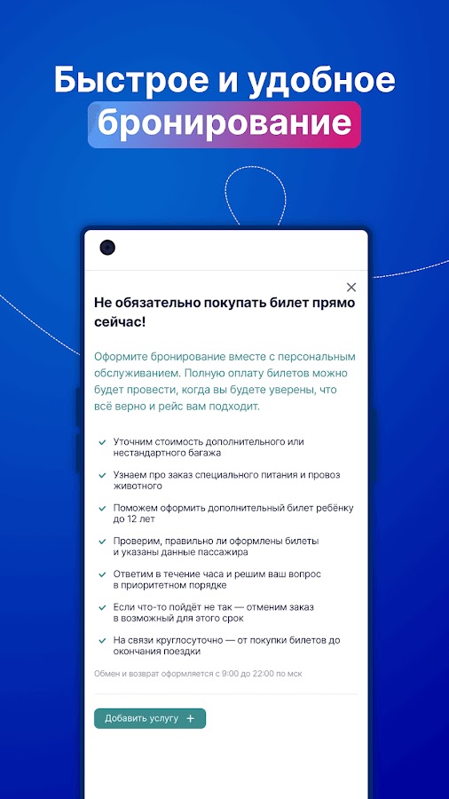 ✅ Бронирование — забронируйте билет и оплатите его позже. Это удобно, если вы еще не готовы принять окончательное решение о покупке.