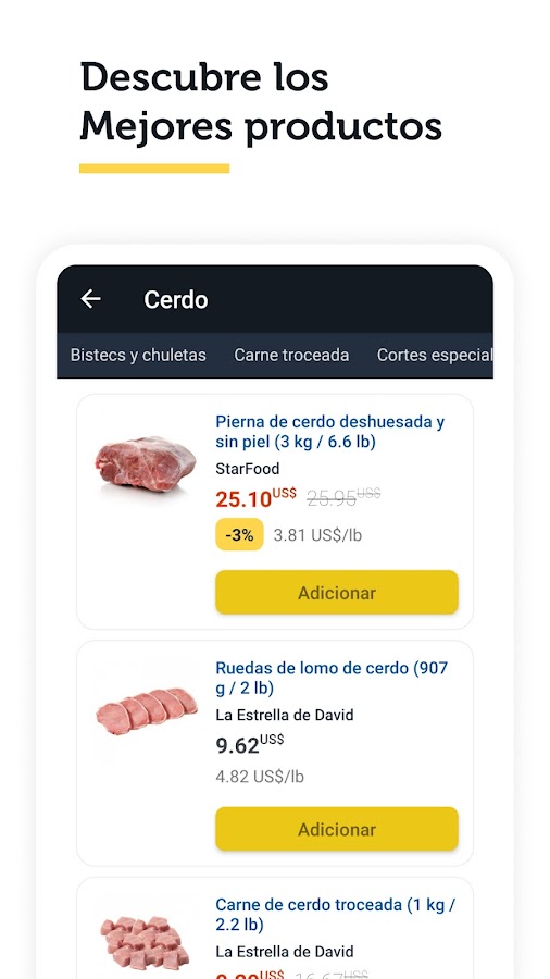 Через наше приложение вы можете заказать еду всех видов, мясо, рыбу, колбасные изделия, средства личной гигиены, косметику, бытовую технику и многие другие товары.