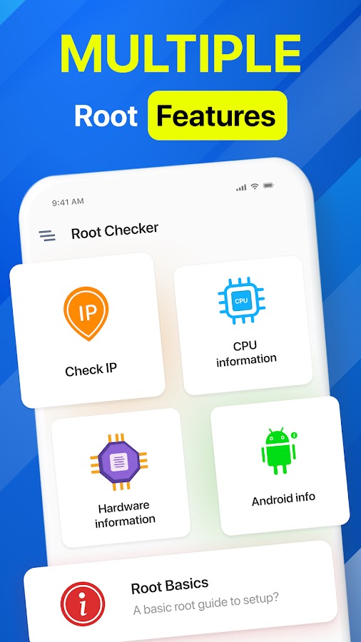 ✅ Быстрая проверка наличия прав root — нажмите один раз, чтобы узнать, есть ли у вашего устройства права root.