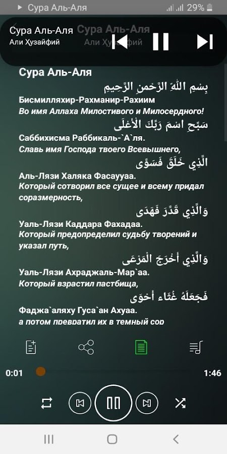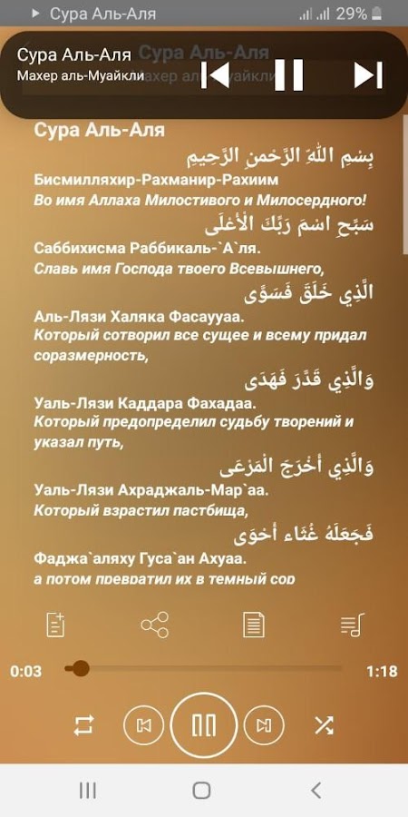 Информация о Сура Аль-Аля аудио и текст