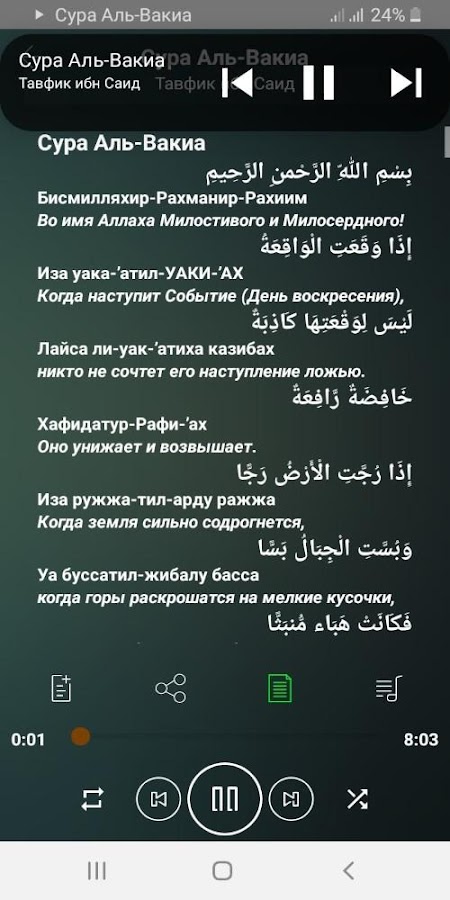 Информация о Сура Аль-Вакиа аудио
