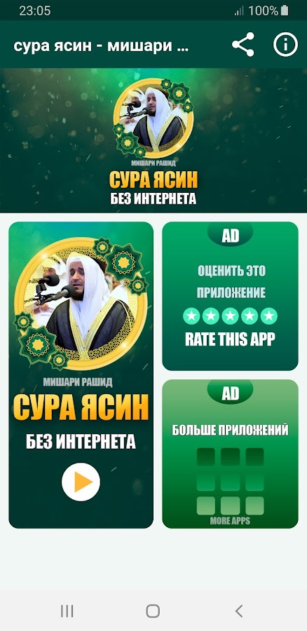 Замечательное приложение для суры Ясин из Священного Корана с голосом чтеца Мишари Рашид без интернета