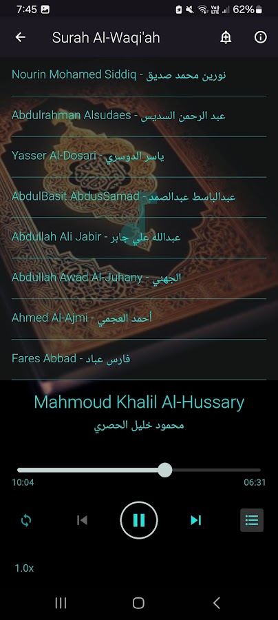 Выберите своего любимого чтеца и погрузитесь в красоту Суры Аль-Вакия в высококачественном аудио.