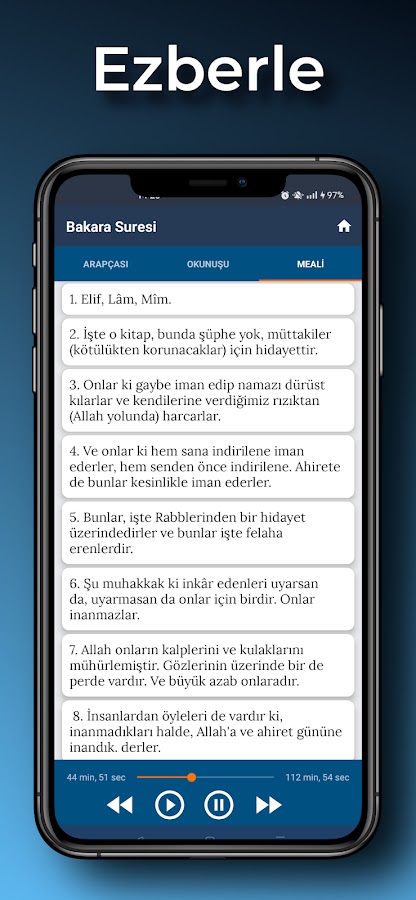 Мы сохранили легкость чтения и использования в качестве основной цели в этой программе, где у нас есть арабский язык, турецкое чтение, значение, хадисы и рассказы о Суре аль-Бакара, которые вы можете легко слушать, даже если у вас нет Интернета, а также хадисы и рассказы о Сурате аль-Бакара. В нашей программе, где вы можете иметь Сура Баккара всегда с вами