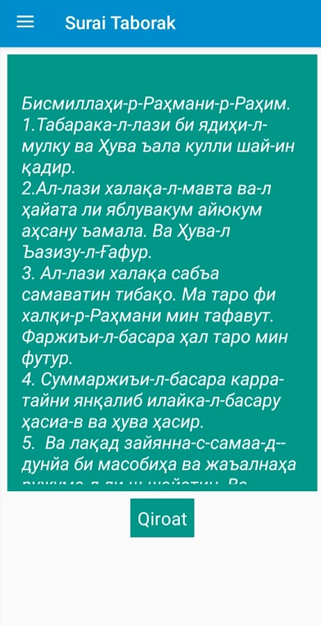 Сура аль-Таборак — это сура 67 вашего Корана, прочтите и запомните. В этой программе вы можете запомнить текст на английском языке. Вы можете слушать кироат суры аль-Таборак .