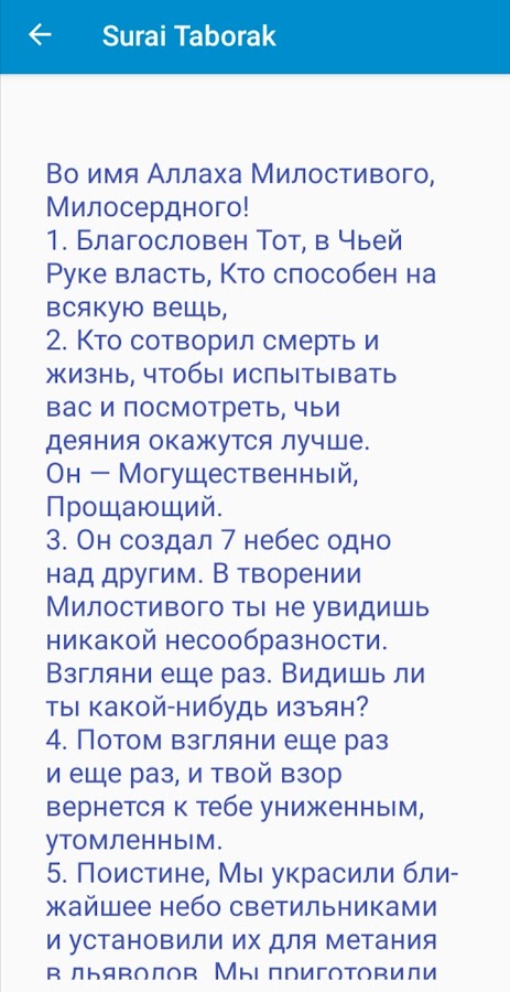 Сура аль-Таборак это сура 67 вашего Корана, читайте и запоминайте. Вы можете услышать повторение суры ат-Таборак