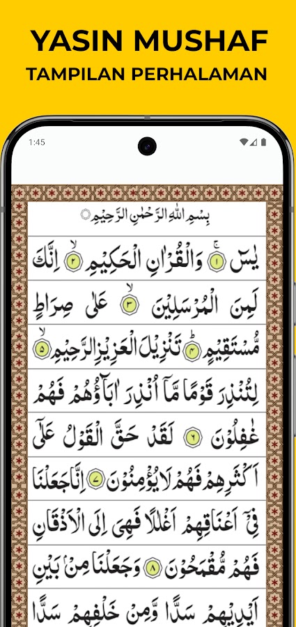Текст и перевод: это приложение предоставляет текст суры Ясин на арабском, латинском и индонезийском языках, что облегчает пользователям чтение и понимание содержания письма.