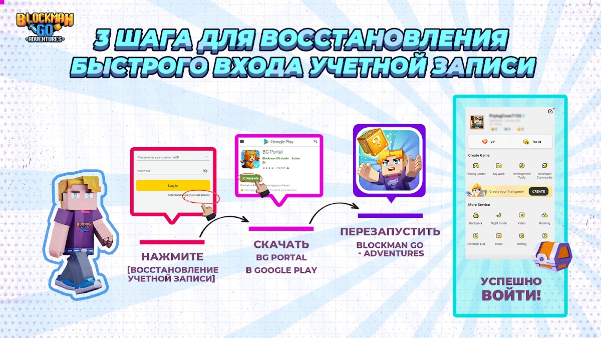 Не волнуйтесь, если вы потеряли доступ к своей учетной записи Blockman Go для игр на выживание — мы вам поможем! Забыли свои учетные данные Blockman Go? Не знаете, как их восстановить? Хотите, как обычно, вернуться в игру с друзьями? Не бойся! Благодаря нашей официальной функции восстановления учетной записи вернуться к делу очень просто.