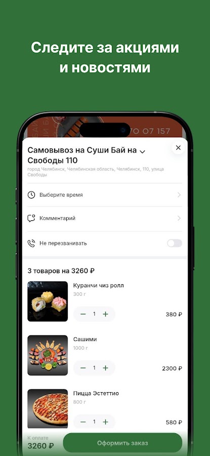 Кроме того, в приложении вы можете следить за акциями и специальными предложениями, чтобы всегда получать максимум от вашего заказа. Мы ценим каждого клиента и стремимся сделать ваш опыт с Суши Бай незабываемым.