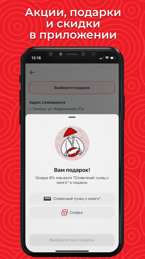 Скидка 8% или ролл в подарок — ежедневно при самовывозе: