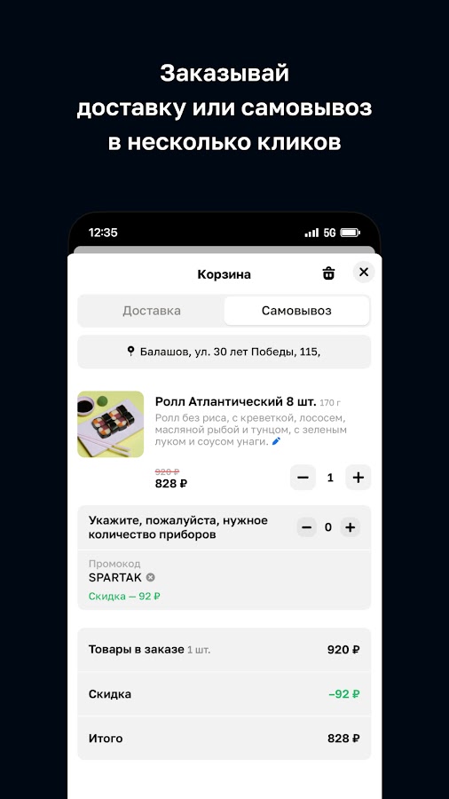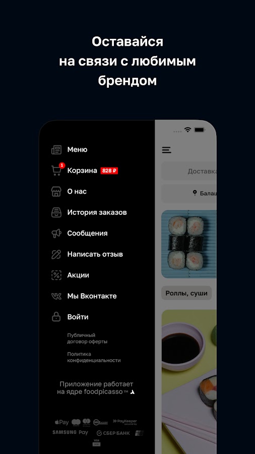 — Сделать заказ быстро и с мгновенным подтверждением через приложение;