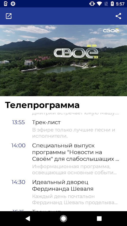 Скачайте приложение Своё ТВ для Android бесплатно - последняя версия (2.0.0) уже доступна для установки на ваш телефон или планшет.