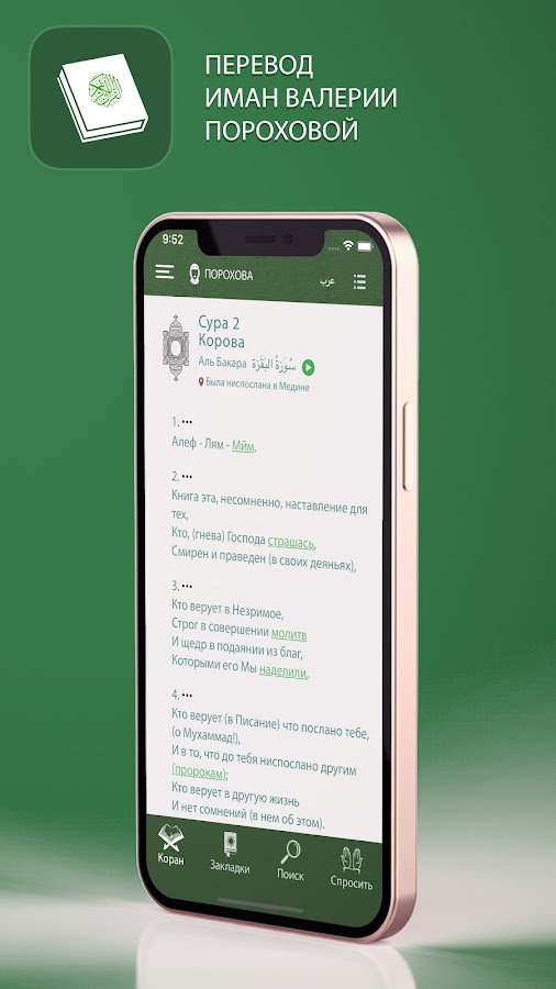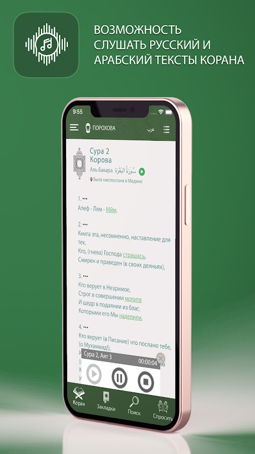 Приложение Священный Коран и Хадисы Пророка уникальная находка для каждого мусульманина. Удобно читать и слушать Священный Коран (на русском и арабском языках), изучать и делиться с друзьями и близкими, интересными аятами Корана, через telegram, whatsapp, facebook, Instagram, SMS и любым удобным способом.