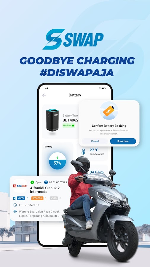 С помощью Swap вы можете переключиться на электрические мотоциклы и не беспокоиться о запасе хода благодаря более чем 700 станциям обмена в точках Alfamart, Alfamidi, Shell, BP-AKR и Circle-K.