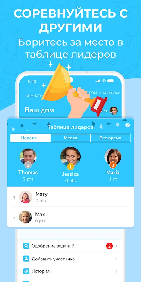 — Автоматически генерируйте ежедневное расписание уборки для каждого в вашем доме;