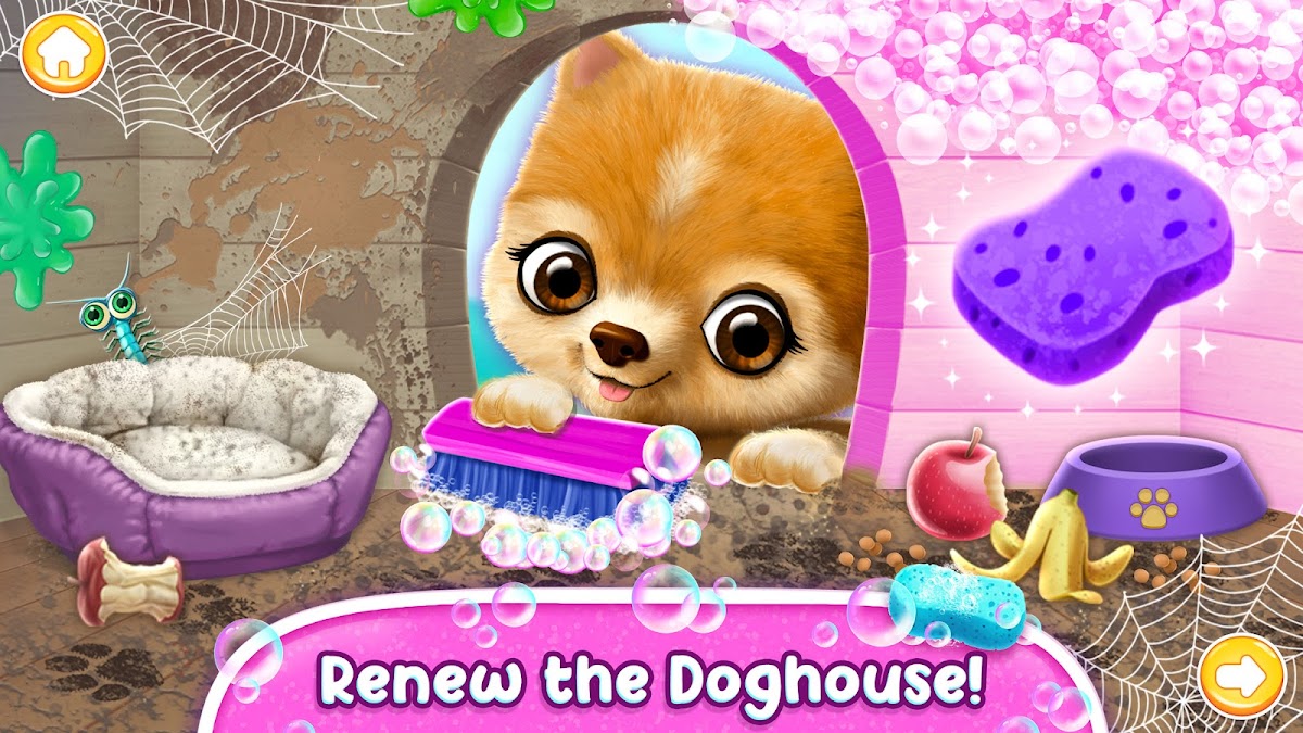 · Сделайте своего виртуального питомца-щенка счастливым — уберите в собачьей будке!