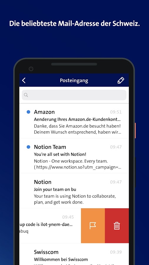 • Простая настройка электронной почты Bluewin на вашем смартфоне.