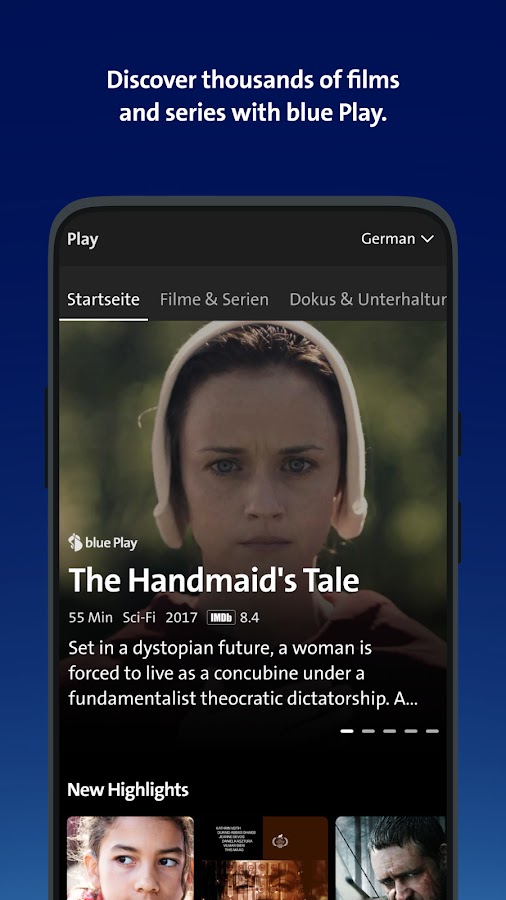 — Доступ к дополнительному контенту blue +, например, лучшим фильмам и сериалам по запросу, спортивным трансляциям (например, Лига чемпионов УЕФА на синем +) для использования на одном устройстве (синий Max, синий Doku, синий Sport).