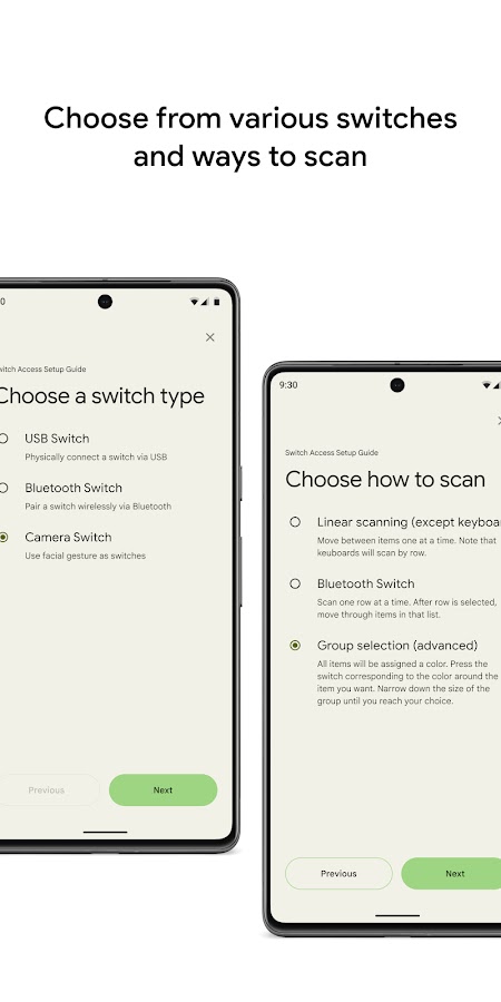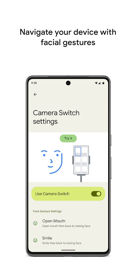 Управляйте телефоном или планшетом с помощью переключателей или фронтальной камеры. Вы сможете выбирать объекты, прокручивать страницы, вводить текст и делать многое другое.