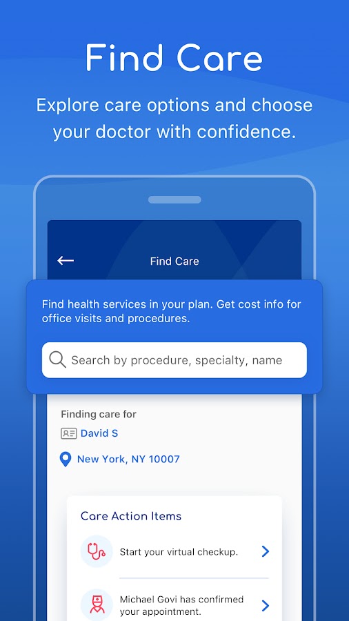 • Найти помощь – Найдите помощь, когда и где она вам нужна. Найдите врачей, лаборатории, больницы и других специалистов здравоохранения в сети вашего плана. Прежде чем получить медицинскую помощь, ознакомьтесь с примерными расходами.