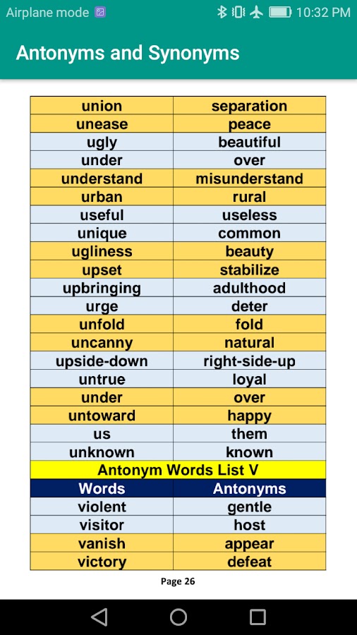 Скачайте приложение Synonyms and Antonyms offline для Android бесплатно - последняя версия (11) уже доступна для установки на ваш телефон или планшет.