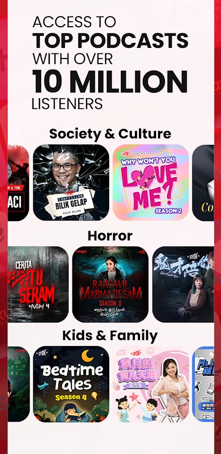 SYOK на базе Astro Audio — официальная платформа цифрового потокового вещания с более чем 1 миллионом активных пользователей в месяц.