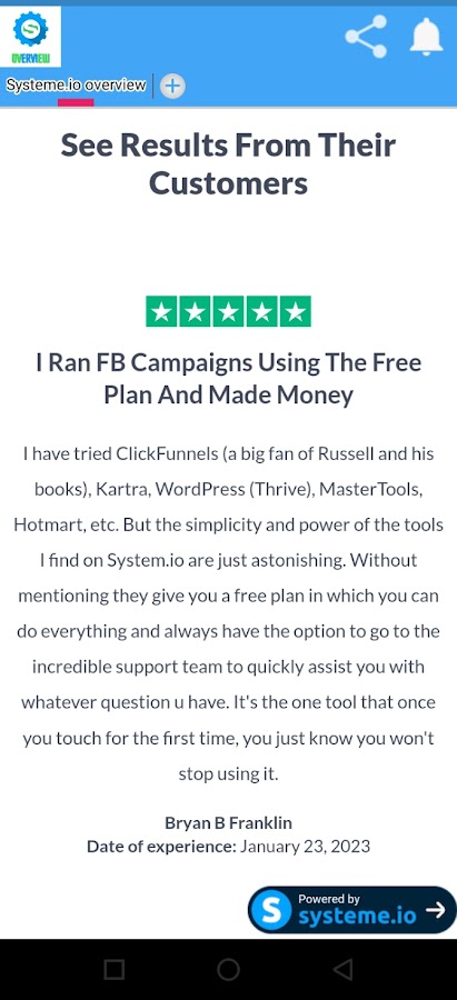 Скачайте приложение Overview of systeme.io для Android бесплатно - последняя версия (9.8) уже доступна для установки на ваш телефон или планшет.