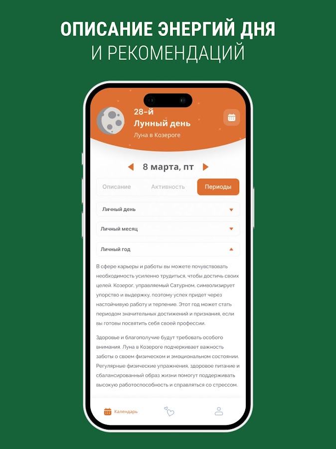 рассчитать личный календарь с рекомендациями, вносить каждый день свои заметки и