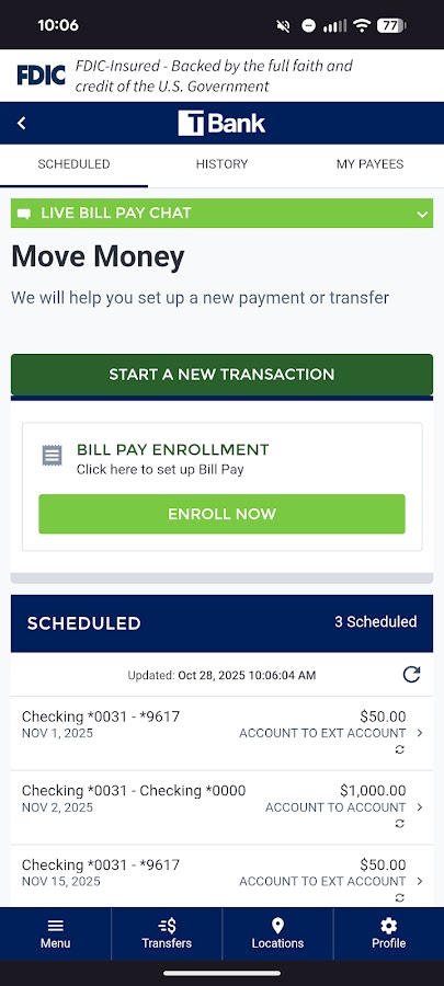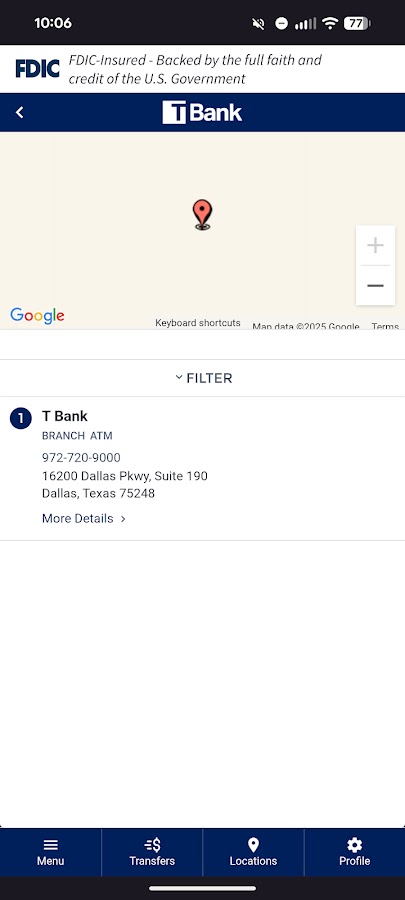 Начните банковское дело, где бы вы ни находились, с T Bank Mobile! Доступный для всех клиентов цифрового банкинга T Bank, T Bank Mobile позволяет вам проверять баланс, делать переводы, оплачивать счета, делать вклады и находить местоположения.