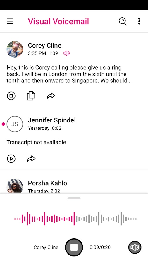 Приложение T-Mobile Visual Voicemail для Android позволяет вам прослушивать и просматривать сообщения на вашем телефоне в любом порядке. Визуальная голосовая почта T-Mobile становится все лучше и лучше! Последнее обновление содержит усовершенствования для преобразования голоса в текст и новый пакет Scam Shield™. T-Mobile Scam Shield™ позволяет пользователям выявлять, блокировать и сообщать о вероятных мошеннических звонках.