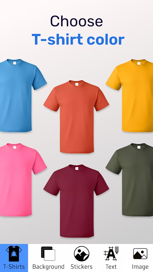 Приложение T Shirt Designer — с легкостью создавайте собственные футболки!Если вы хотите дать волю своему воображению и создать крутые дизайны на футболках, приложение T Shirt Designer — это именно то, что вам нужно. Изготовление футболок по индивидуальному заказу еще никогда не было таким простым и увлекательным! Независимо от того, являетесь ли вы новичком или экспертом в дизайне футболок, приложение T Shirt Designer предложит вам все возможности, которые могут вам понадобиться для создания эффектных рубашек без каких-либо серьезных усилий. Сделайте первый шаг в разработке и демонстрации своего стиля с помощью приложения T Shirt Design.