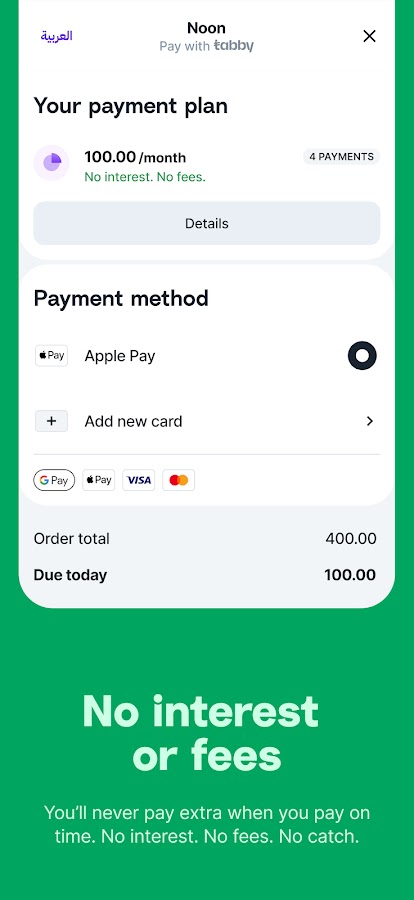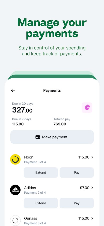 Tabby позволяет вам делать покупки то, что вам нравится, и разделить покупки на четыре ежемесячных платежа — без процентов, без скрытых комиссий и без сюрпризов. Делаете ли вы покупки в Интернете или в магазине, Tabby дает вам контроль, финансовую гибкость и душевное спокойствие.