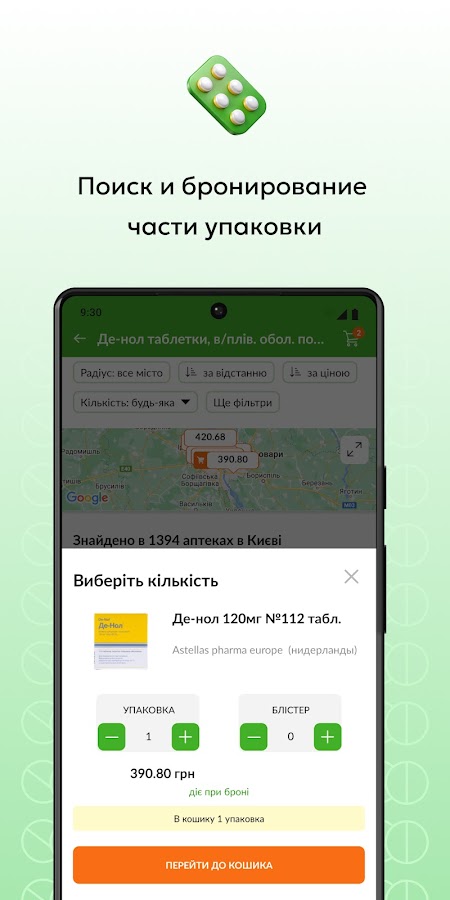 3. Теперь выберите нужное лекарство и забронируйте его. Вот и все, теперь осталось только получить заказ в ближайшей аптеке. Будь здоров с Tabletki.ua!