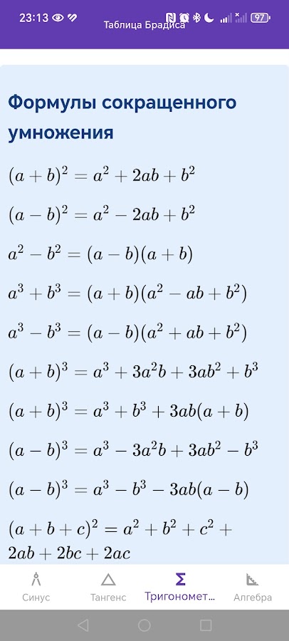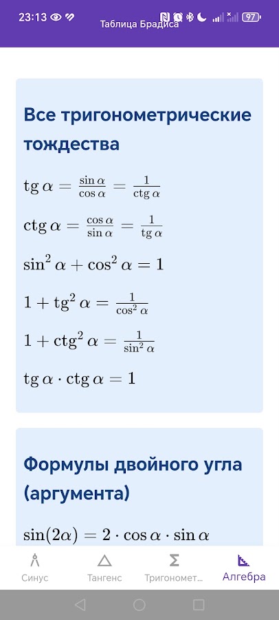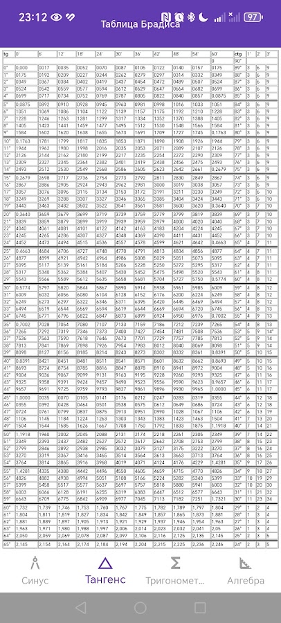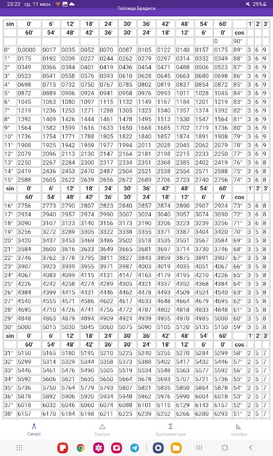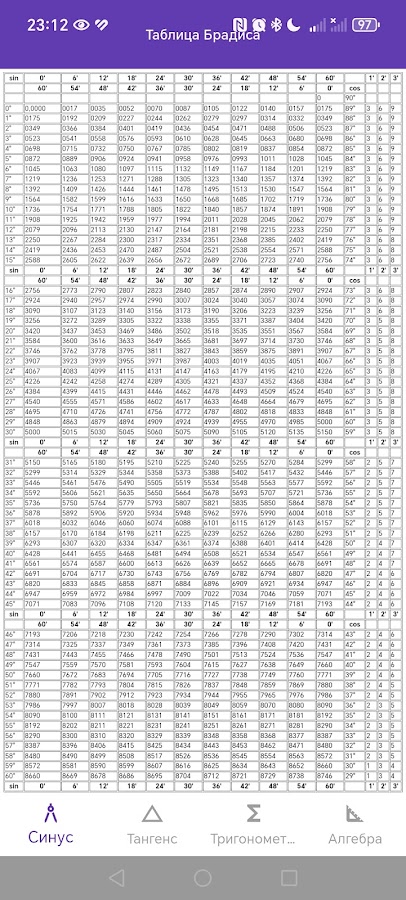 Простая таблица Брадиса не заменимая вещь для школы которая позволит легче решать тригонометрические задачи и примеры.