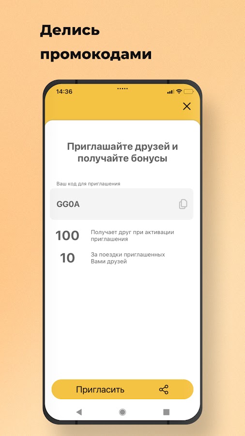 Приглашайте друзей в приложение и зарабатывайте бонусы с помощью реферальной системы. Оплачивайте ими и экономьте на поездках.