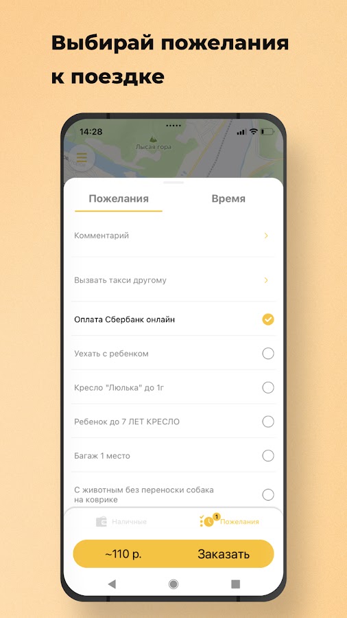 Используйте опцию “Вызвать такси другому” в разделе “Пожелания” и укажите его номер телефона. Когда такси подъедет, на указанный номер придет СМС, а вам — сообщение в приложении.