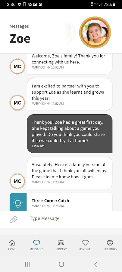 * получать обновления, ежедневные отчеты, видео, фотографии и ресурсы от учителя вашего ребенка, которые связаны с опытом в классе;