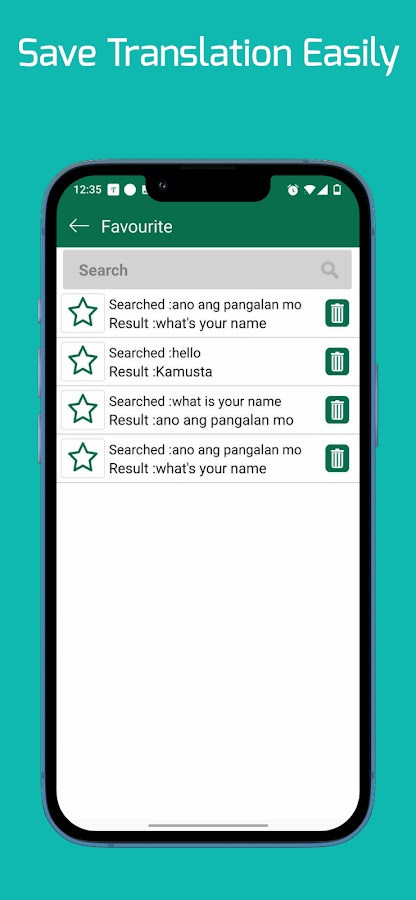 • Сохраняйте свои любимые фразы, чтобы планировать простые разговоры на английском с тагальским языком, а также с тагальским на английский.