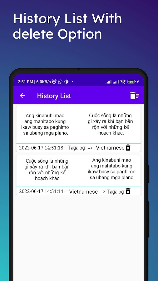 Тагальско-вьетнамский переводчик для перевода текста, перевода слов, перевода абзацев, а также перевода полных предложений. Это приложение также используется для перевода с тагальского на вьетнамский и с вьетнамского на тагальский перевод также для слов, текста и полных предложений.