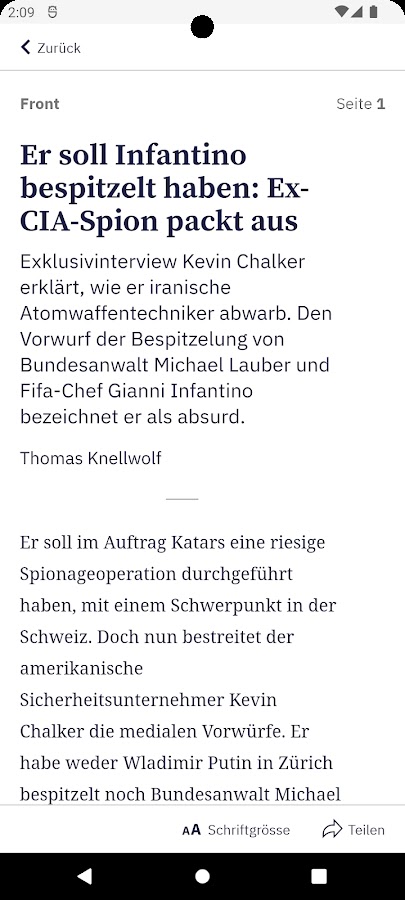 Вы можете скачать приложение бесплатно. Подписчики печатной газеты полностью читают все выпуски без дополнительной оплаты. Все остальные пользователи могут купить отдельные выпуски (2,00 швейцарского франка) или подходящую подписку в приложении, если это необходимо.